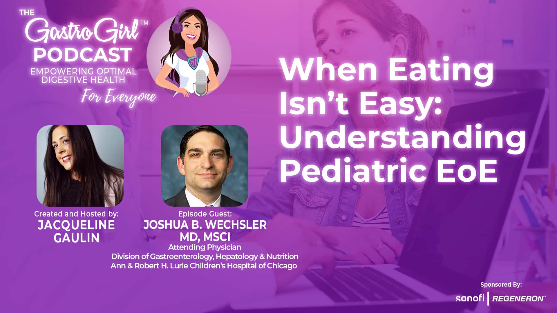 When a child has trouble eating, gaining weight, or explaining discomfort while swallowing, it can be heartbreaking for parents and confusing for the child. These may be early signs of Eosinophilic Esophagitis (EoE) — a chronic inflammatory condition of the esophagus that affects how food moves through the digestive tract. In this episode, pediatric gastroenterologist Dr. Joshua B. Wechsler from Northwestern Medicine shares what families need to know about recognizing EoE early, getting an accurate diagnosis, and navigating treatment options. He also offers guidance on helping children manage EoE at school, during meals, and in social settings — so they can live healthier, happier lives. See related episode: “Growing Up with EoE: A Family’s Journey from Childhood to College”. Find trusted, evidence-based information and resources on EoE at gastrogirl.com. This episode is sponsored by Sanofi and Regeneron.