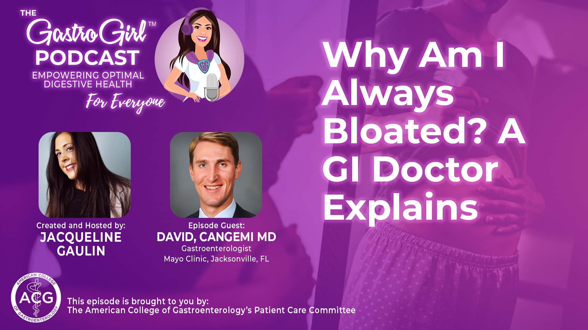 Bloating is one of the most common digestive complaints but also one of the most misunderstood. Many people experience frequent bloating without knowing what’s causing it, whether it’s normal, or when it may signal something more serious. In this episode of the Gastro Girl Podcast, host Jacqueline Gaulin talks with gastroenterologist David J. Cangemi from the Mayo Clinic to unpack the real reasons behind bloating and what your digestive system may be trying to tell you. Together, they discuss: – The difference between occasional bloating and chronic bloating – Common causes including diet, IBS, and gut-brain disorders – How constipation and motility issues contribute to bloating – When bloating may be linked to conditions like IBS, food intolerances, or SIBO – Warning signs that should prompt medical evaluation – Practical, evidence-based strategies to safely reduce bloating If bloating is affecting your daily comfort or quality of life, this episode offers trusted, physician-guided insights to help you better understand your symptoms and know when to seek care. This episode is produced in collaboration with the American College of Gastroenterology Patient Care Committee.